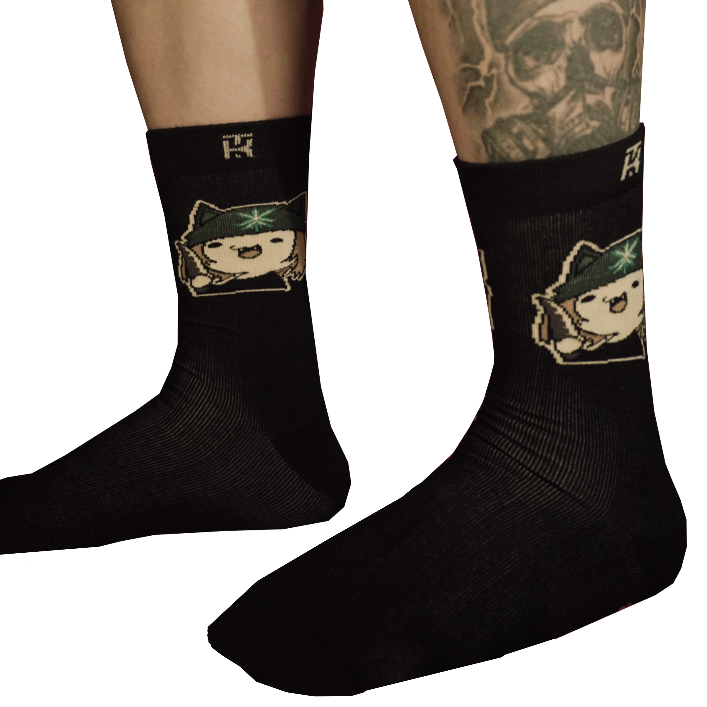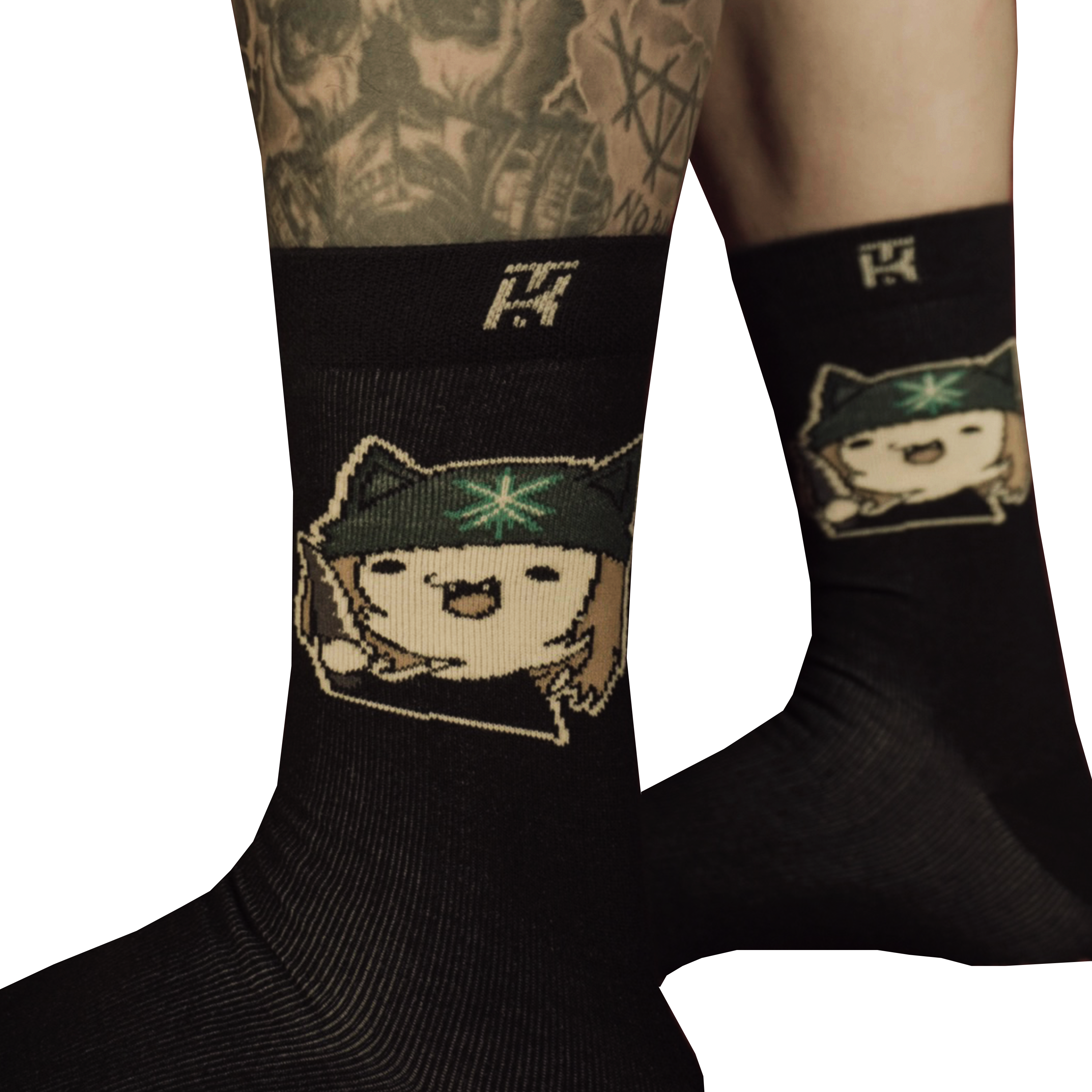 These black socks feature a chill lil dude in a green hat… holding a knife. Yeah. He’s adorable and dangerous — just like your vibe. Soft, stretchy, and perfect for flexing your chaotic energy anywhere, anytime.